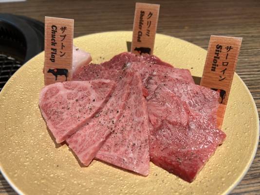 Japanese sirloin is cut from the back of the cow, between the ribs and the hips, so it is leaner than other meats and has a firmer texture from the larger fibers. Most of the cuts in yakiniku restaurants are thinly sliced, though, so this helps eliminate the slightly tougher texture that might be expected from sirloin steaks in other countries. Even so, the Japanese way still allows you to enjoy the rich flavors of this barbecue to the fullest!